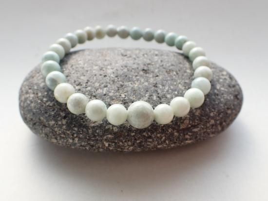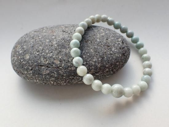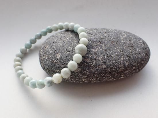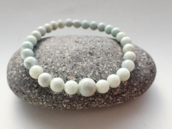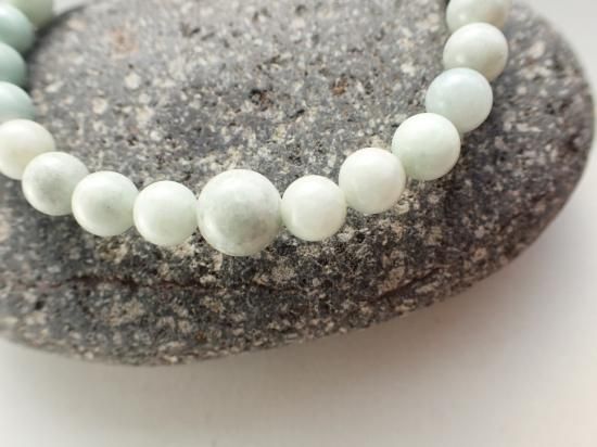 サイズ:直径約6mm玉。中央に8mm玉1個。内径約16cm、全長約19cm。白に近い色合いです。気品のある面持ちをしています。樹脂浸透していない、未処理未染色の新潟県糸魚川市産翡翠原石(糸魚川ヒスイ)を使用しています。オペロンゴム結び。コロナウイルス騒動以前に香港の特約工場で製作したため、安価に提供できています。ビーズの在庫切れのためサイズの延長はできません。