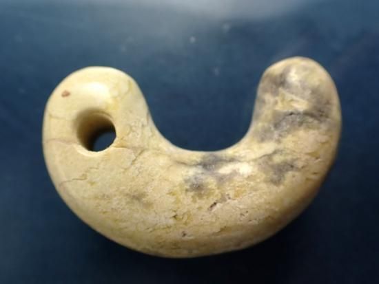 サイズ:約38x25x10mm(多少のばらつきがあります)。 イエローターコイス勾玉をよそで見つけるのは困難と思います。中国産の原石を使用。イエローターコイスは珍しい色合いのターコイス(トルコ石)です。通常の空色のターコイスは含有されている銅成分によって空色に発色しています。クリソコラなどと同じ道理です。銅成分が減って鉄分が多くなると空色から黄緑色、緑色へと変色していきます。漢字ではトルコ石を松緑石と書くのもそのためです。イエローターコイスの幾分緑味を含んだ柔らかな黄色は、気分が沈みがちであるとき、憂鬱な思いを受け止めて、明るい気配に変換してくれます。しっとりと心に馴染んで慰めてくれる得がたいパワーを秘めています。どれも美人揃いの顔立ちです。