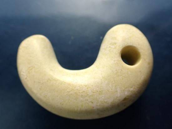サイズ:約38x25x10mm(多少のばらつきがあります)。 イエローターコイス勾玉をよそで見つけるのは困難と思います。中国産の原石を使用。イエローターコイスは珍しい色合いのターコイス(トルコ石)です。通常の空色のターコイスは含有されている銅成分によって空色に発色しています。クリソコラなどと同じ道理です。銅成分が減って鉄分が多くなると空色から黄緑色、緑色へと変色していきます。漢字ではトルコ石を松緑石と書くのもそのためです。イエローターコイスの幾分緑味を含んだ柔らかな黄色は、気分が沈みがちであるとき、憂鬱な思いを受け止めて、明るい気配に変換してくれます。しっとりと心に馴染んで慰めてくれる得がたいパワーを秘めています。どれも美人揃いの顔立ちです。