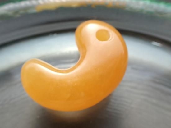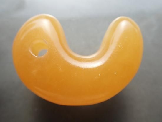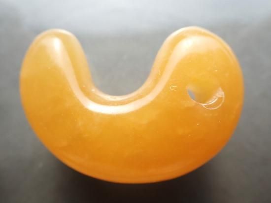 イエロージェードは、ともすれば不安定になりがちの私たちを元気づけてくれる、もっとも重要なパワーストーンです。この石とともにいるだけで、多少辛いことや嫌なことがあっても元気良さを回復できます。「障害や中傷を踏み越えて自分の道を歩くのだ」というふうに気持ちを整えられます。イエロージェード勾玉は元気のもとであり希望の星になってくれます。金運効果も高められていいことづくめ。護身用に持っていたい天然石です。多少染色してあるようです。