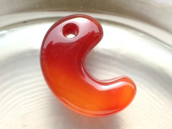 サイズ:約38x25x12mm(多少のばらつきがあります)。 ブラジル産の原石を使用。レッドアゲートの朱色は古来「辟邪(へきじゃ)の赤」とされています。辟邪(へきじゃ)は悪霊、魔物の他に他者の羨望や嫉妬など、邪悪なものを寄せつけないという意味。外出先での事故を避ける、不運な目に合わないようにする、他者からの中傷・妬み・非難などで進路を妨害されなくなるなどが辟邪の効用です。レッドアゲートは気持ちを振るいおこすよう力添えするばかりでなく、ネガティブな要素に邪魔されずに、目的へと向かって情熱を燃やせるよう手助けしてくれます。