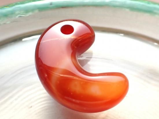 サイズ:約38x25x12mm(多少のばらつきがあります)。 ブラジル産の原石を使用。レッドアゲートの朱色は古来「辟邪(へきじゃ)の赤」とされています。辟邪(へきじゃ)は悪霊、魔物の他に他者の羨望や嫉妬など、邪悪なものを寄せつけないという意味。外出先での事故を避ける、不運な目に合わないようにする、他者からの中傷・妬み・非難などで進路を妨害されなくなるなどが辟邪の効用です。レッドアゲートは気持ちを振るいおこすよう力添えするばかりでなく、ネガティブな要素に邪魔されずに、目的へと向かって情熱を燃やせるよう手助けしてくれます。