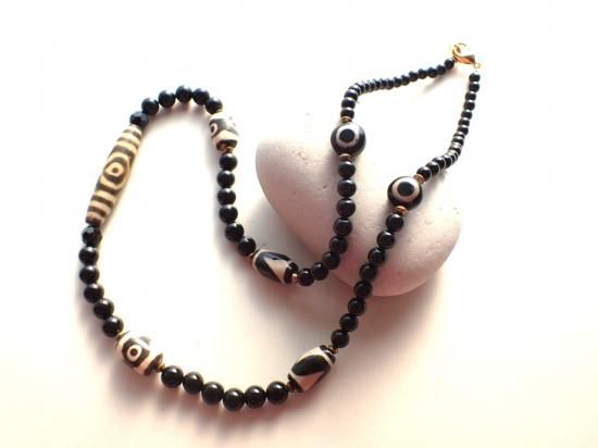 3眼天珠+ブラックオニックス・11 60cm \15,000→5割引\7,500