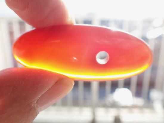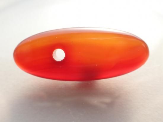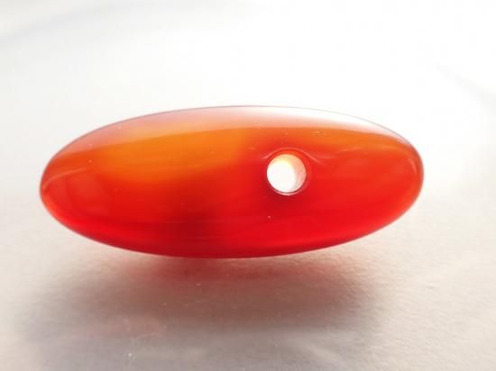 サイズ:約50x20x11mm(多少ばらつきがあります)。ブラジル産原石から制作しました。レッドアゲートの朱色は古来「辟邪(へきじゃ)の赤」とされてきました。外出先での事故を避ける、不運なめに遭わないようにする、邪霊や悪霊たちの介入を遮断する、他者からの中傷・嫉妬・非難・悪意を回避するなどが辟邪の意味です。レッドアゲートはネガティブな要素に邪魔されず、目的へと向かって情熱を注げるよう手助けしてくれる守護石です。写真の製品をお送りします。最後の写真はロービキ紐を付けた場合のイメージ写真です。