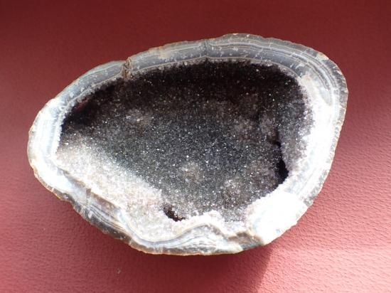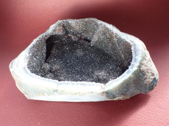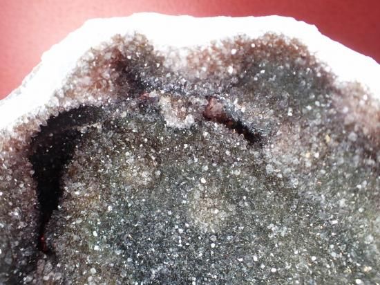 サイズ:約155x100x40mm、463g。ブラジル産、当社アメシスト・コレクションのうちの1点です。決まりがあるわけではないのですが胡麻の種や芥子粒ほどの結晶が並んだ水晶をドウルージー・クォーツと読んでいます。結晶粒が大きくなれば一般的な水晶になり、顕微鏡でも確認できないほどに小さくなればメノウになります。黒い小さな結晶が集ったクラスターは黒水晶とはいわずにブラックアメシストとよぶのが一般的です。ブラックアメシストは珍しい部類の水晶です。アメシストはケイ酸分子の間に入り込む鉄分などのせいか、少数の例外を除いて柱状に結晶せず、個々の結晶も大きく育ちません。けれど色合いやクラスターの形状の多彩さは目を見張るものがあり、変種はコレクターの間で人気があります。