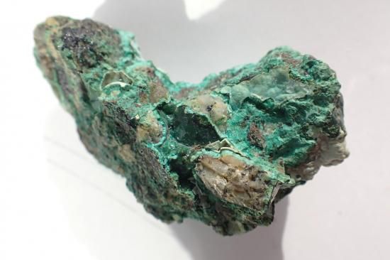 写真左の大きなほうはアタカマイトと同じチリ産。右側の小さなほうはアメリカ産です。チリ産のものはクリソコラとマラカイトが混在した美しい色合いをしています。