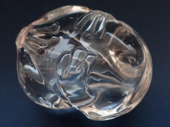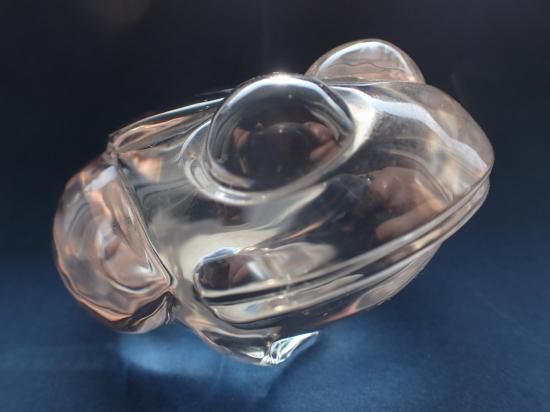 サイズ:約66x53x37mm、167g ほぼ無傷。同じ原石で丸玉を作るともっと高額になります。 ブラジル産水晶を使用。かつて実店舗のスターだった水晶製ガマ財神です。自室に飾って話しかけたりすると、ガマ財神の超念力で財運・金運・幸運を引き寄せてくれます。ガマ財神は月の宝物殿の守護者、三本足なので三脚ガマともいい、ガマは漢字では「蟾蜍(せんじょ)」と難しい表現になります。完全無傷製品ではありません。