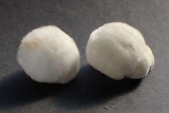 サイズ:左42x37x34mm、23g。右47x38x35mm、29g。インド、プーネ産。まるで小動物の尾のように見えることからラビットテールの愛称で親しまれています。極細の繊維状結晶が密に集合して植物の綿毛か動物の毛皮のように見えているからで、触れてみるとふわふわしているわけではないのですが、鉱物なのに動物の毛皮のように見えるところがなんとも不思議です。ゼオライトの鉱脈から採掘されることが多く、アポフィライトやギロライト、スチルバイトなどとともに産出します。鉱物のコレクションケースに収めて、ときおりちょっと触れたりすると、幸運が開けてくる気分になれます。