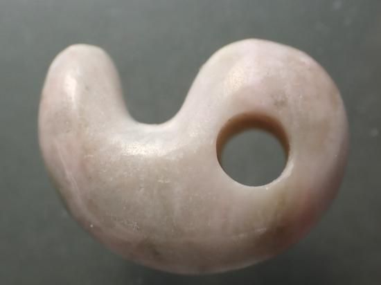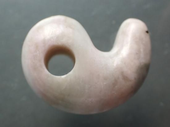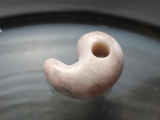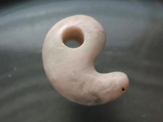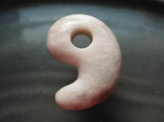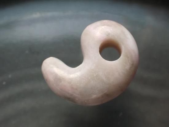 ピンクヒスイは産出量が少なく、勾玉などに加工されることが少ない鉱物です。肌色に近い明るく薄いピンク色、またはごく淡く桃色がかった白色をしています。眺めているだけで癒されます。このサイズのピンクヒスイ勾玉は今回掲載分で販売終了です。