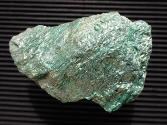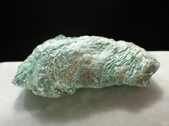 サイズ:約68x46x16mm、57g。ブラジル産。クロム雲母はクロムを含んだ白雲母で鉱物名をフクサイトといいます。多くはクロム発色によって緑色をしています。この鉱物にケイ酸が浸透するとグリーン・アベンチュリンになります。明るい所でみるとラメ入りの織物のようにキラキラと輝いてみえます。