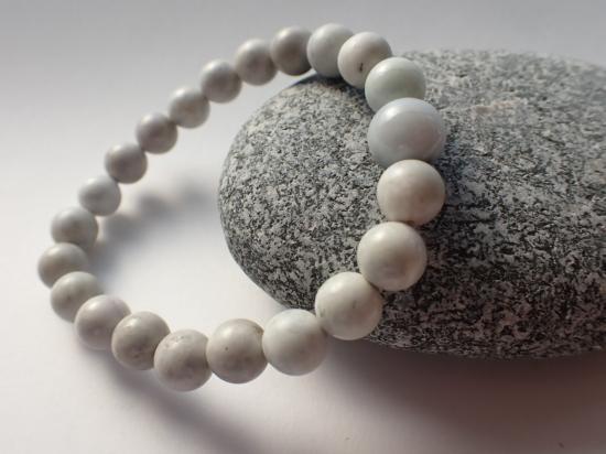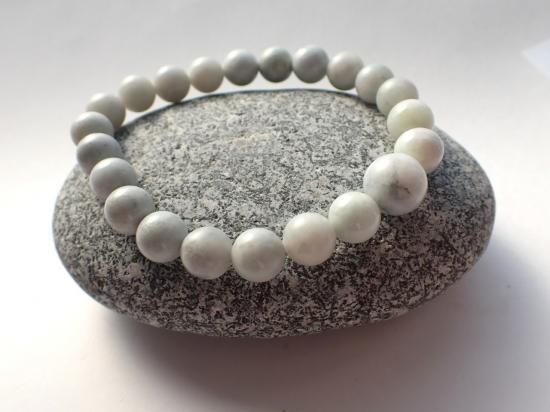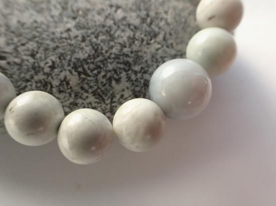 サイズ:8mm玉、10mm玉1個。内径約16cm。白色系。樹脂浸透していない、未染色の新潟県糸魚川市産翡翠原石(糸魚川ヒスイ)を使用しています。オペロンゴム結び。コロナウイルス騒動以前に香港の特約工場で製作したため、安価に提供できています。