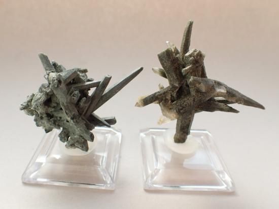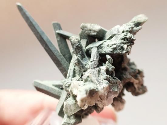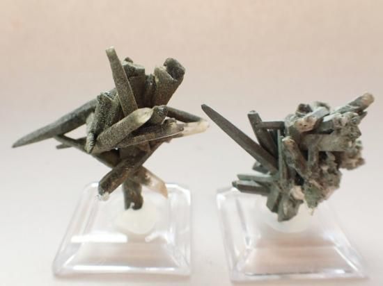 サイズ:約30-37mm、台を含む重量22g。ネパールのガネーシュヒマール産クローライト入りニードルクォーツをふたつ一組にしてお送りします。クローライト(緑泥石)を内包して先端が細い針状の水晶です。ガネーシュヒマールはネパールの首都カトマンズ市の北方にあって、財運の象頭神ガネーシュにちなむ名前。行きも帰りも徒歩だけが頼りの山道を数日かけてのぼり、手掘りしてくると聞いています。聖なる土地にあるモノには聖なる力が宿っているといわれてきました。