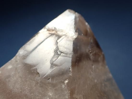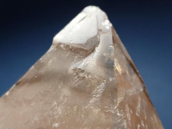 無染色未処理の原石です。この標本ではキャップをかぶせるように黒味のある水晶が、既存の水晶ポイントに付着しています。エレスチャルにはスピリチュアルな領域へ意識をいざなう効力が高いように見受けられます。エレスチャルからは天界の音楽が聞こえてくるという人もいます。