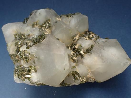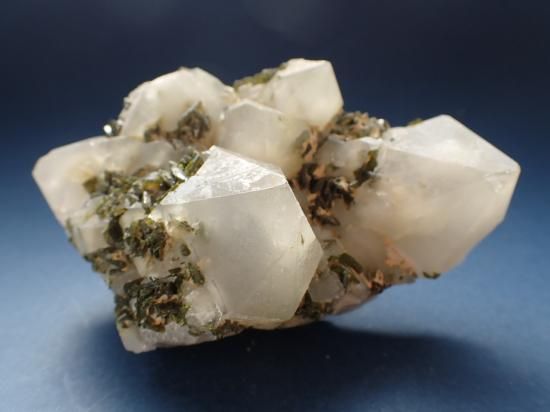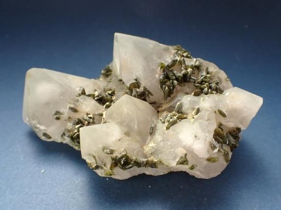 サイズ:約90x60x36mm、165g。ユニークな形状で知られる四川省美姑(スーチョワン・メイグー)産の水晶クラスターです。エピドートが随伴しています。