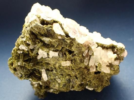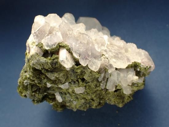 サイズ:約77x72x64mm、272gユニークな形状で知られる四川省美姑(スーチョワン・メイグー)産の水晶クラスターです。エピドートが随伴しています。内包されている鉱物のせいでライトアメシストのようにみえます。表側と裏側とふたつの異なる表情を楽しめます。