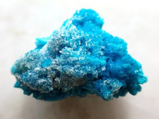 サイズ:約30x22x13mm、約6,1g。サムネールボックス用にコレクションしてきた原石を、引退目指しての在庫一掃セールのため超安価で提供しています。ネット価格よりも安価にしてさらに半額での提供です。ヒマラヤの青いケシの花に似た色合いをしていて、コンペイトウのようにキュートな形をしています。カバンサイトは組成元素のカルシウム+バナジウム+シリコンの頭文字をつなぎ合わせた名称だとか。インド産が有名です。小さな標本なのでモノサシ片手にサイズを確認しながらごらんになってください。
