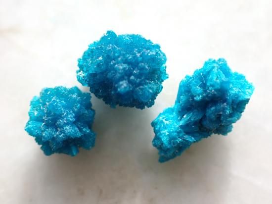 サイズ:7-13mm、1.7g。3個一組にしてお送りします。サムネールボックス用にコレクションしてきた原石を、引退目指しての在庫一掃セールのため超安価で提供しています。ネット価格よりも安価にしてさらに半額での提供です。ヒマラヤの青いケシの花に似た色合いをしていて、コンペイトウのようにキュートな形をしています。カバンサイトは組成元素のカルシウム+バナジウム+シリコンの頭文字をつなぎ合わせた名称だとか。インド産が有名です。小さな標本なのでモノサシ片手にサイズを確認しながらごらんになってください。