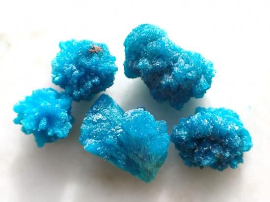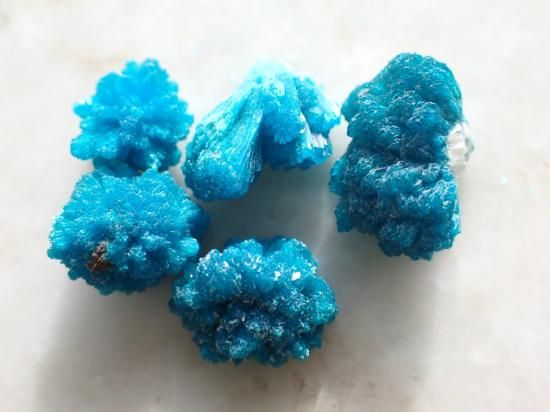 サイズ:7-10mm、1,9g。5個一組にしてお送りします。サムネールボックス用にコレクションしてきた原石を、引退目指しての在庫一掃セールのため超安価で提供しています。ネット価格よりも安価にしてさらに半額での提供です。ヒマラヤの青いケシの花に似た色合いをしていて、コンペイトウのようにキュートな形をしています。カバンサイトは組成元素のカルシウム+バナジウム+シリコンの頭文字をつなぎ合わせた名称だとか。インド産が有名です。小さな標本なのでモノサシ片手にサイズを確認しながらごらんになってください。