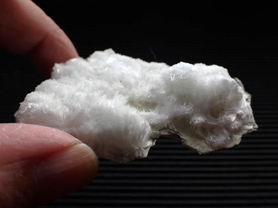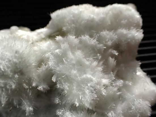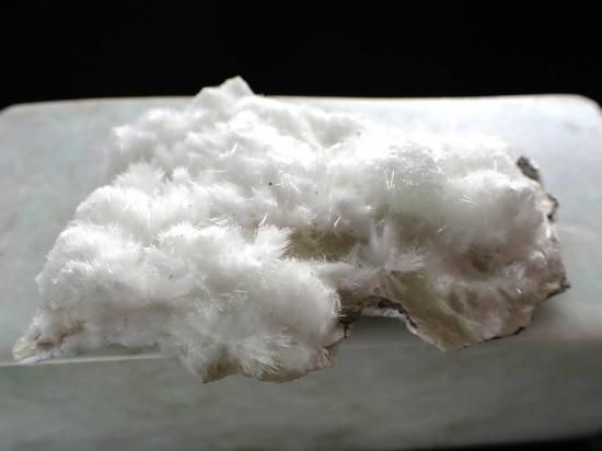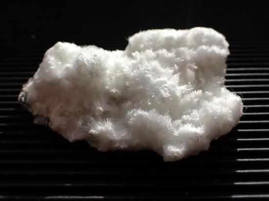 サイズ:約69x52x14mm、15g。倉庫の棚に収納したままになっていた標本箱からあまりにマニアックで名前も知られていない鉱物標本を持ち出してきました。アメリカ、カリフォルニア産のアルチナイト、和名はアルチニ石。イタリアの鉱物学者にちなむ名称とか。蛇紋岩が風化してできた鉱物で、マグネシウムが主成分。オケナイトに似た繊維状結晶が密集しています。白い鉱物や白い花は純粋無垢な感じがして心が洗われる気持ちになります。