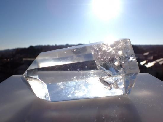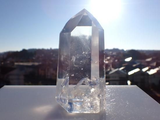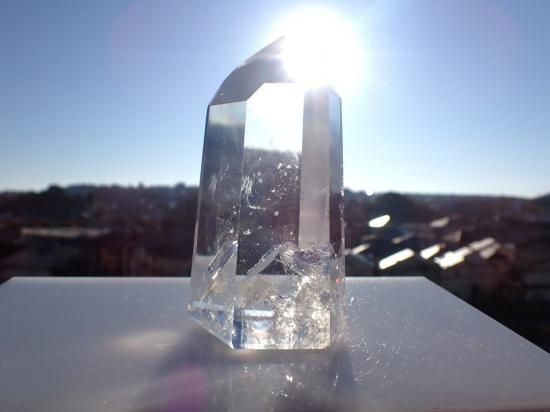 こうした大サイズの水晶ポイントでは、「気」がわからないという方でも、心静かに向き合うようにすると、わかるようになります。邪気を受けやすい人には邪気払いの効力を発揮します。