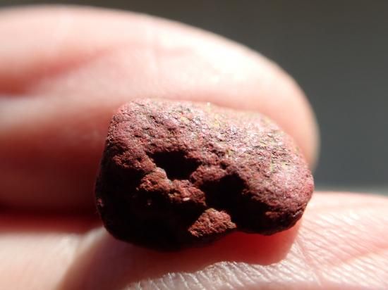 サイズ:約11-7mm、5.5g。。芋辰砂は鉱床の母岩が地下水に溶けて流され、辰砂微結晶のみが集積してできたと考えられています。結晶が発達したものではなく、微結晶の凝集体です。形状から芋辰砂と呼ばれてきました。北海道北見市留辺蘂町(るべしべちょう)イトムカ鉱山のものがよく知られています。背景の転石は製品に付属していません。4個一組にしてお送りします。