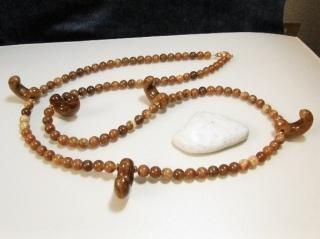 丁字頭勾玉はスパイスの丁字(クローブ)に似ているので名付けられたとされています(あまり似ていません)。一説にはイレズミを表現していて、勾玉のパワーアップをはかった形といわれています。弥生・古墳時代を代表する勾玉の一種で、類似の形のものが列島各地の古墳などから出土します。イルカが笑っているように見える勾玉で、眺めているとおなかのおくほうがくすぐったくなるように感じます。パワーアニマルへの信仰から獣の頭を模したものであろうと想像していますが、詳しいことはわかっていません。