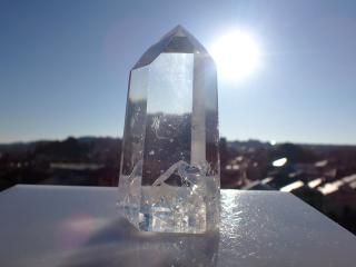 こうした大サイズの水晶ポイントでは、「気」がわからないという方でも、心静かに向き合うようにすると、わかるようになります。邪気を受けやすい人には邪気払いの効力を発揮します。